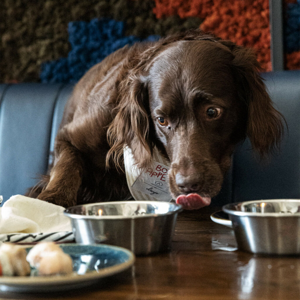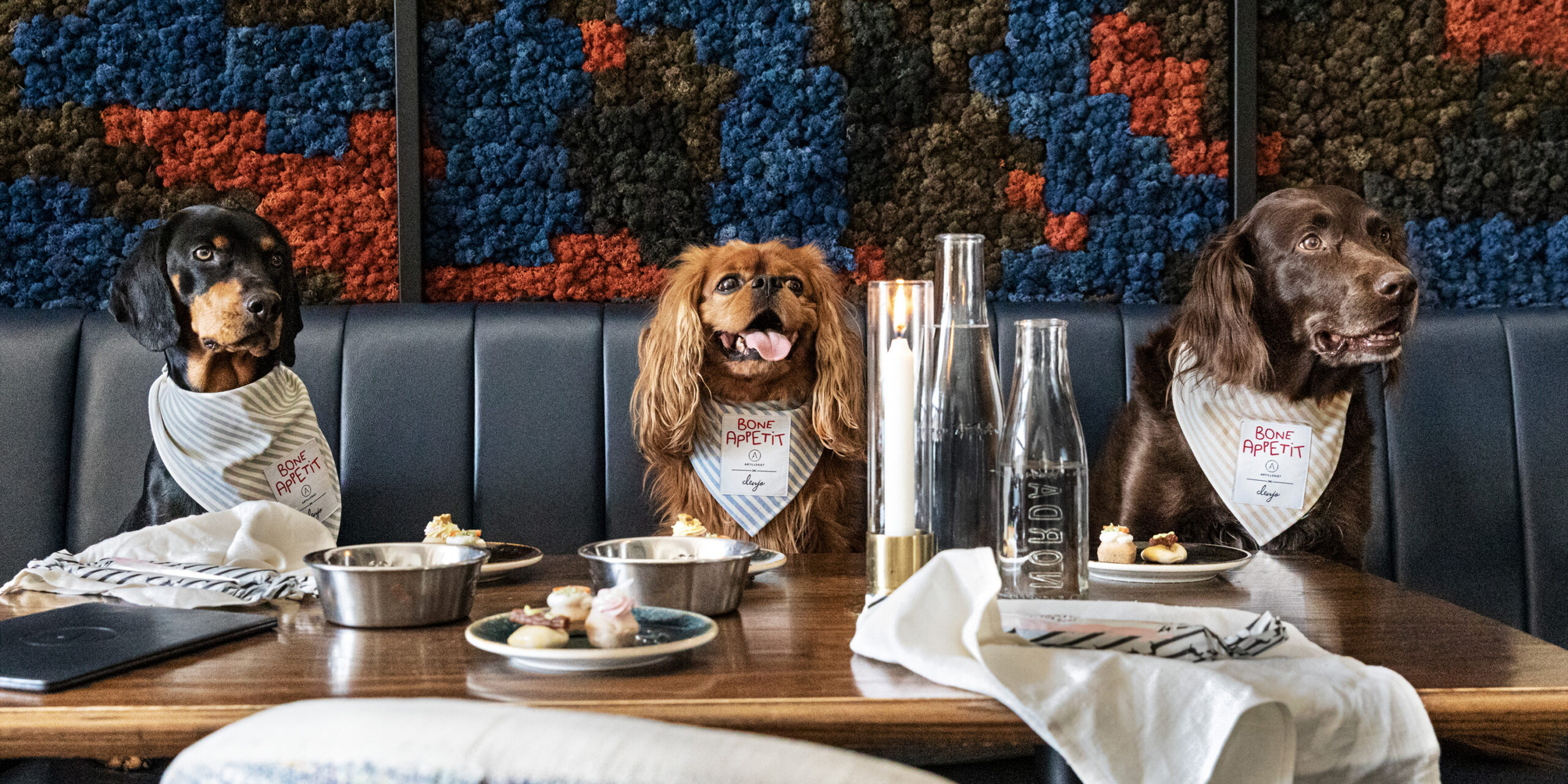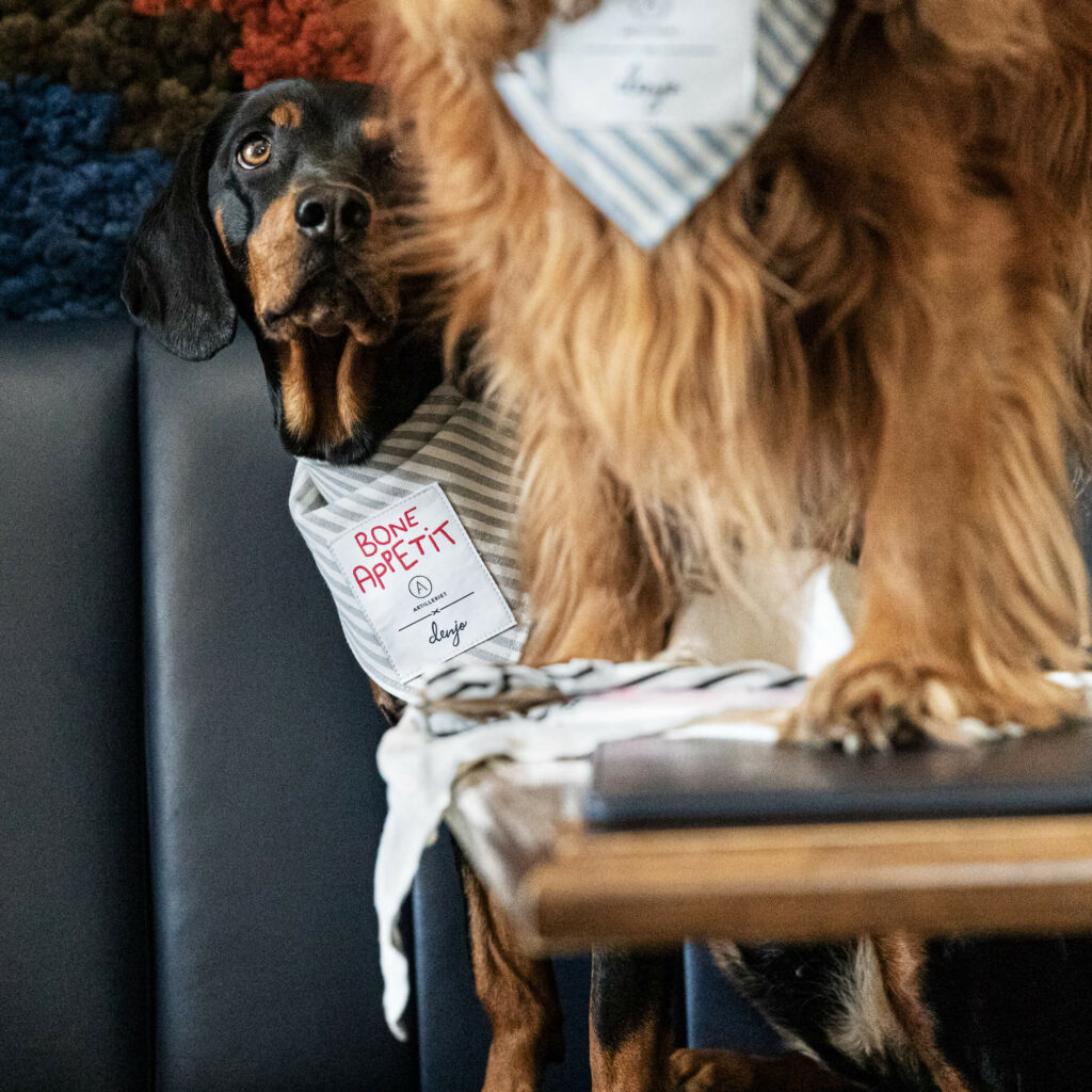 The collection consist of three festive dog scarves made from a blue, green and yellow striped fabric, and a cosy dog blanket in beige. The blanket is designed to stay in place and to become a comfortable, safe spot for the four-legged friend to rest upon during the restaurant visit. Each piece is decorated with a Bone Appetit logotype signed Artilleriet x Denjo Dogs. All products are designed in Stockholm and made in Italy.