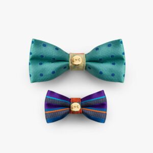 Denjo Dogs together with Eton Shirts presents upcycled dog bow ties in playful patterns and colors. Made from leftover Eton Shirts fabrics from 100% silk, manufactured in Como, Italy. The bow ties are produced in Sweden and designed with a golden detail of 100% recycled steel. Each bow tie is unique in its color and pattern. Thus, the bow tie you receive will differ in pattern and color from the one you see in the product image.
