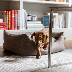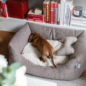Teddy Lounge is a cozy dog bed especially suitable for smaller breeds and puppies with its soft side bolsters and lowered front. The inner pillow is designed with one side in a teddy pile which makes it extra comfortable.