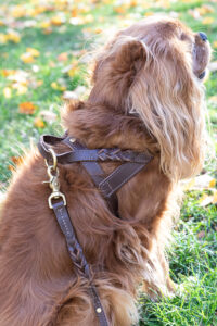 The leather dog harness Stockholm from Denjo Dogs features fine braided details and golden brass hardware. The dark brown double-sided leather is at once soft and robust and will develop a beautiful and natural patina over time. The leather tends to soften even more and stretch out slightly over time. A beautiful Denjo favorite! Pair it with Stockholm Lead 155 cm and Stockholm Poop Bag dispenser. Initially the leather can feel a bit stiff. It will soften over time. We recommend to grease the harness before using it.