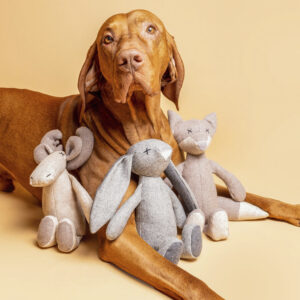 Marley Moose is a stylish plush toy with swishing ears for your dog to enjoy. The dog toy has a soft feel, yet a robust fabric. It is made without a squeaker.