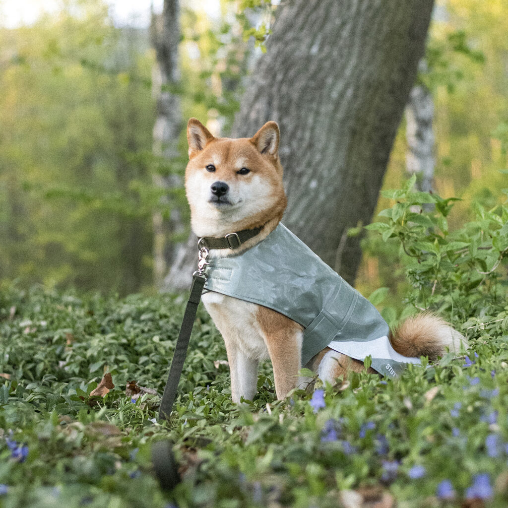 Stutterheim Dog Raincoat is a waterproof dog coat that keeps the dog dry and warm during rainy and windy days. Available in several colors and five sizes.