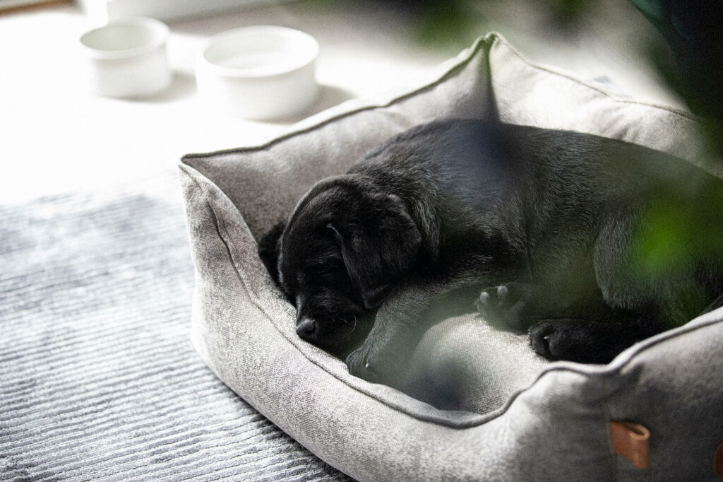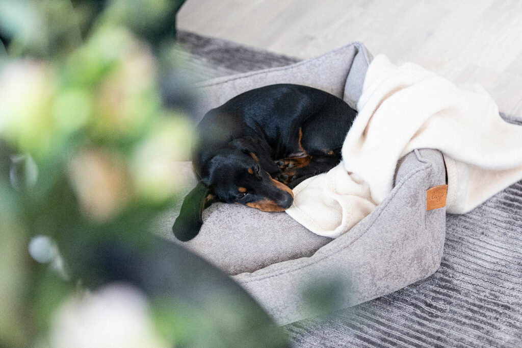 The dog bed Soft Lounge is designed with soft side bolsters that work as a comfortable “pillow” for your dog to rest its head upon. The lowered front makes it easy to step into, which makes this bed ideal for small dogs, puppies and dogs with short legs. The dog bed has been designed with a cover in OEKO-TEX® certified furniture textile and filling of recycled polyester.