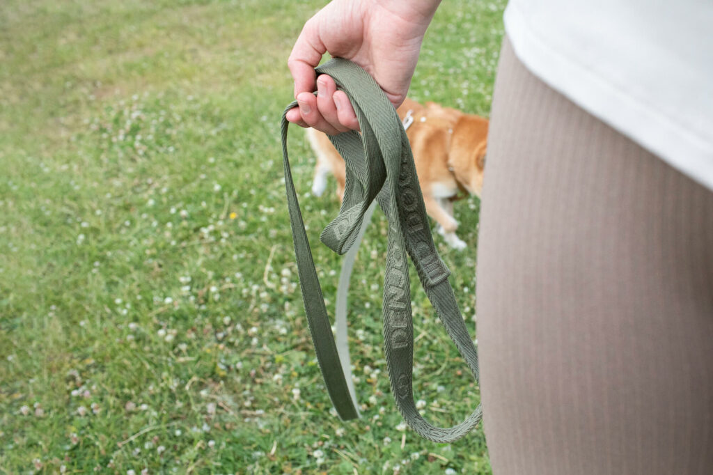 Everyday Logo hundkoppel är tillverkade av olivgrön återvunnen polyester med lätt glansig finish och Denjo Dogs logotyp invävd. Everyday Logo är designade i Sverige och tillverkas i Italien.