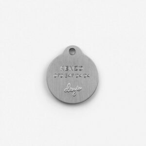 Denjo Dogs bästsäljande namnbricka tillverkas i Sverige av äkta mässing med silverplätering. Framsidan är präglad med Denjos karaktäristiska hundben och baksidan graveras med valfri text, t.ex. hundens namn och ert telefonnummer. Maximalt kan 30 tecken anges.