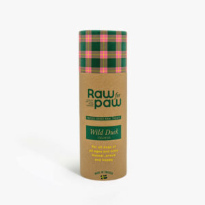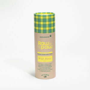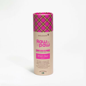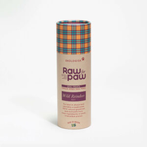 Raw for Paw hundgodis Wild Reindeer är ett ekologiskt belöningsgodis gjort på 100% frystorkat kött från ren. Hundgodiset tillverkas i Sverige och säljs i en praktisk pappersförpackning om 38 gram (c:a 2,5 dl) frystorkade köttkuber i formatet 1x1x1 cm.