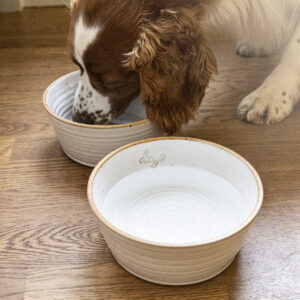 Vit hundskål i keramik från Denjo Dogs (limited edition). Hundskålarna tillverkas och drejas för hand i Sverige, har en stilren design och är framtagna för att hålla över tid, såväl designmässigt som funktionsmässigt. Säljs endast i butik.
